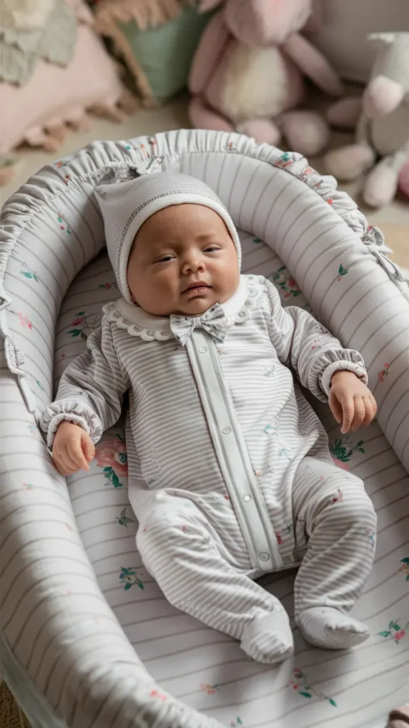 Whether you choose a cozy sleeper or a cute onesie, the right outfit makes a big difference. It’s all about finding something that’s both cute and comfortable. This ensures your baby feels secure and happy.